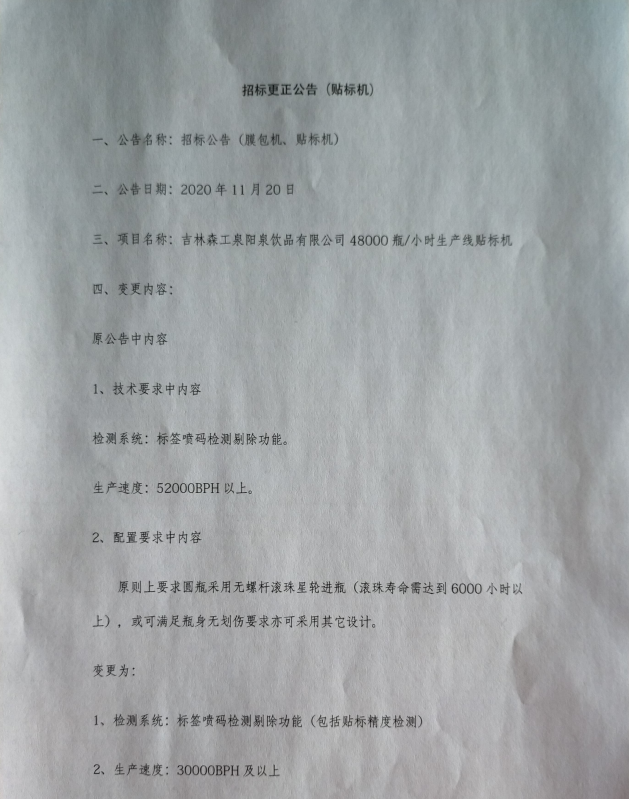 招標(biāo)公告(貼標(biāo)機(jī))